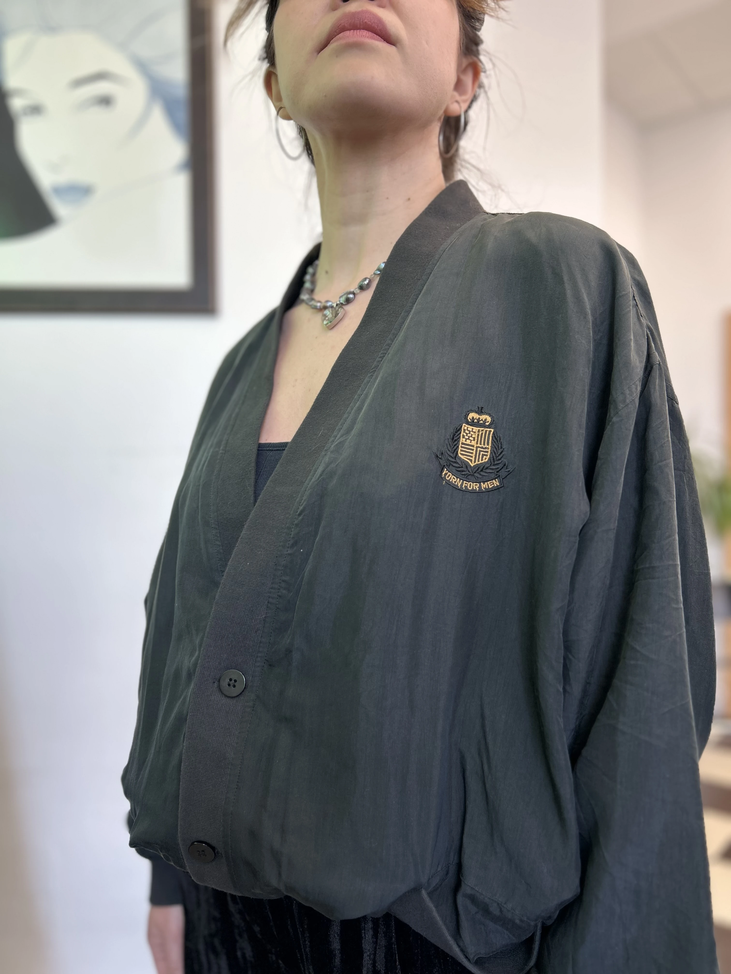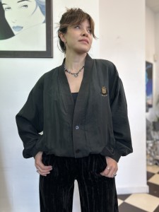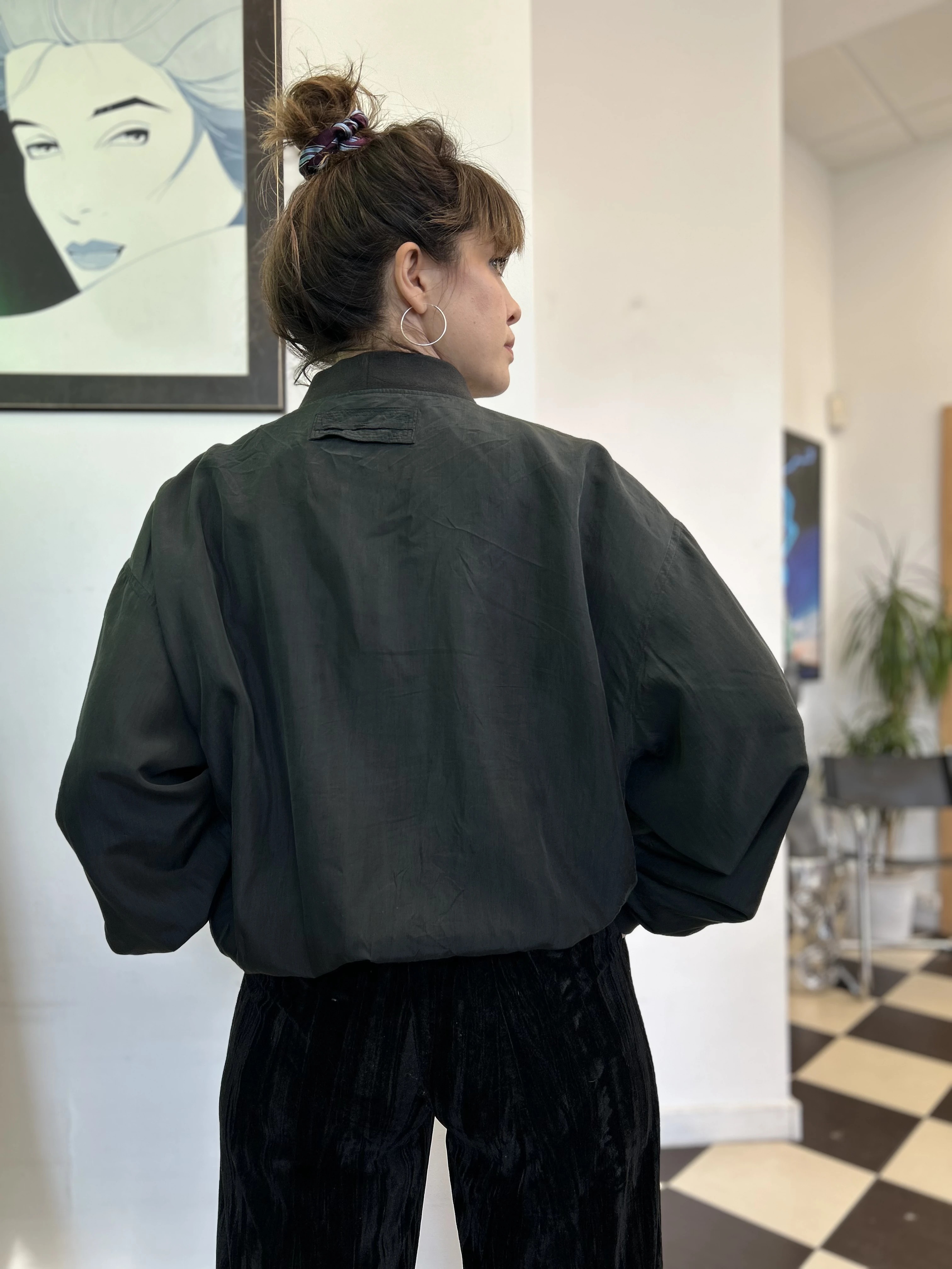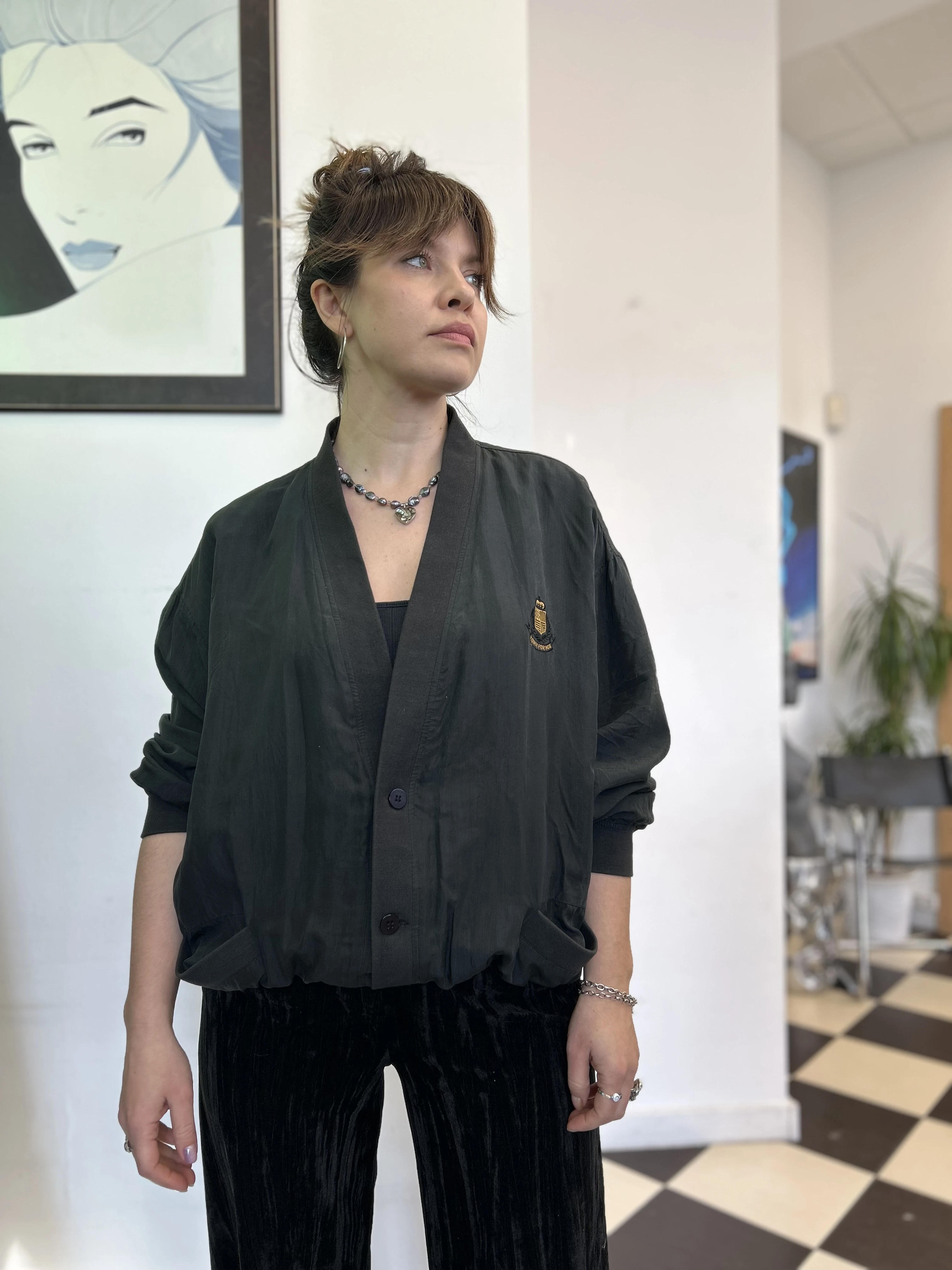 Czarna jedwabna kurtka bomberka vintage