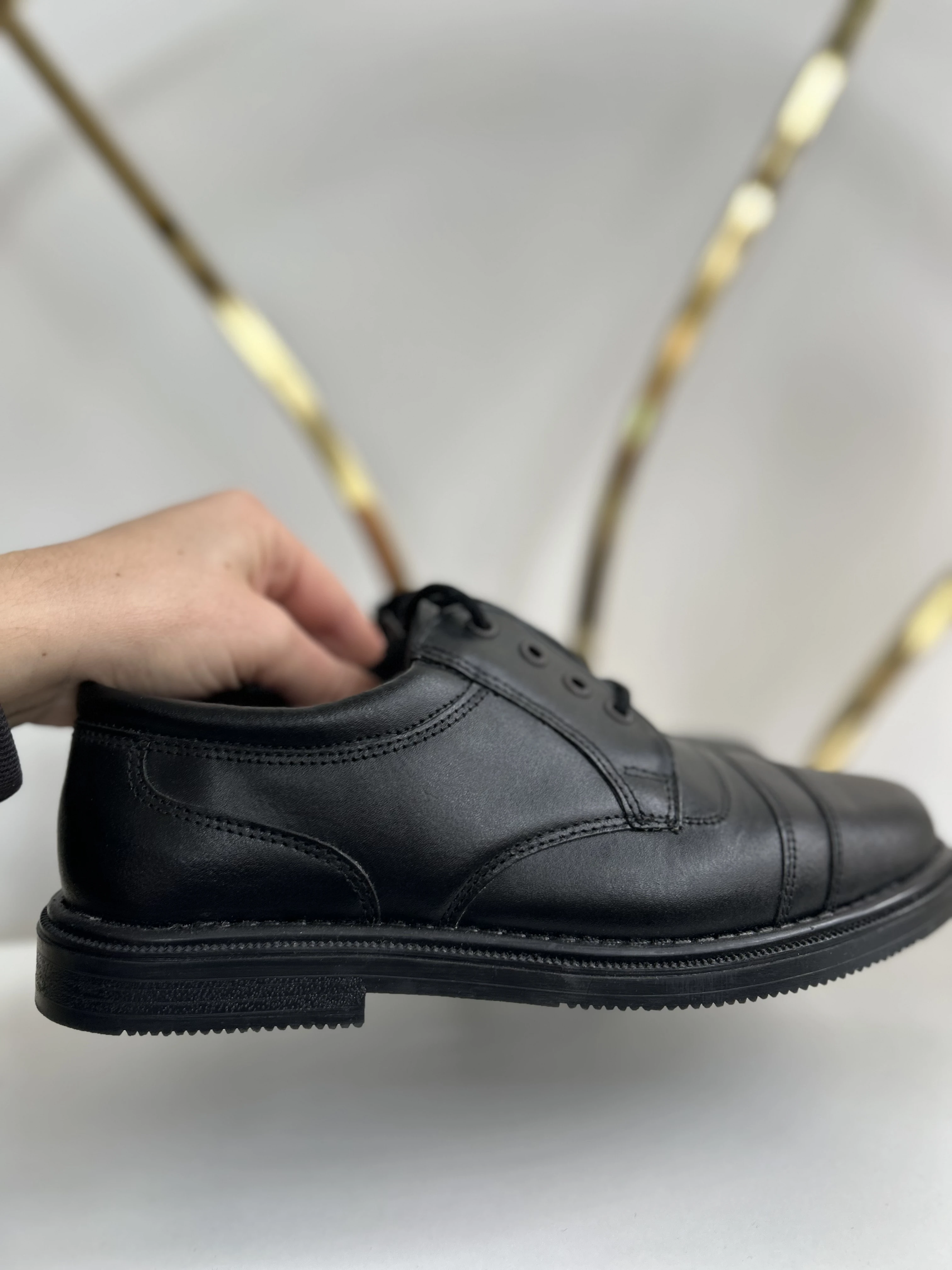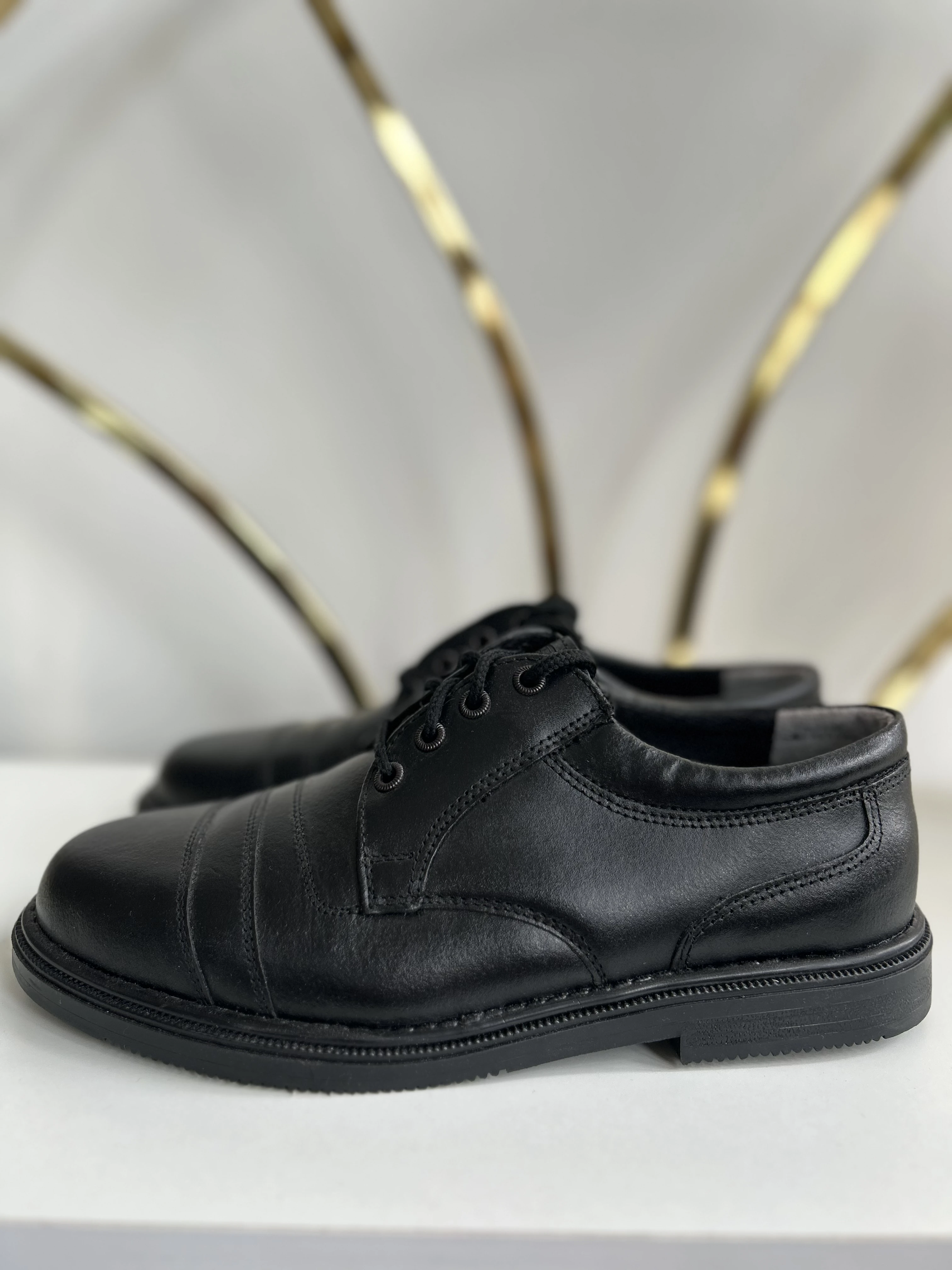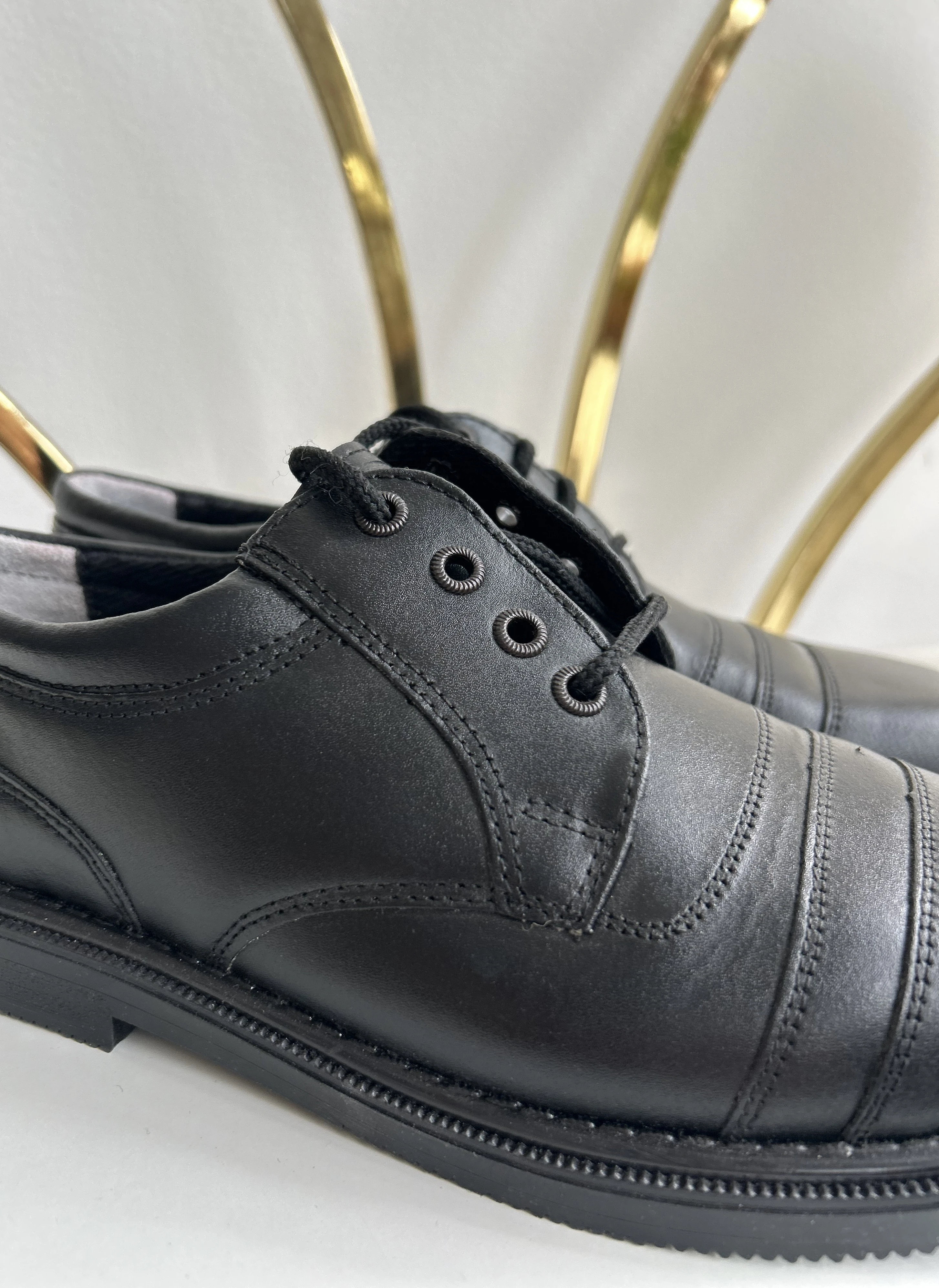 Czarne skórzane buty vintage dead stock. Wykonane w Polsce w latach 90.