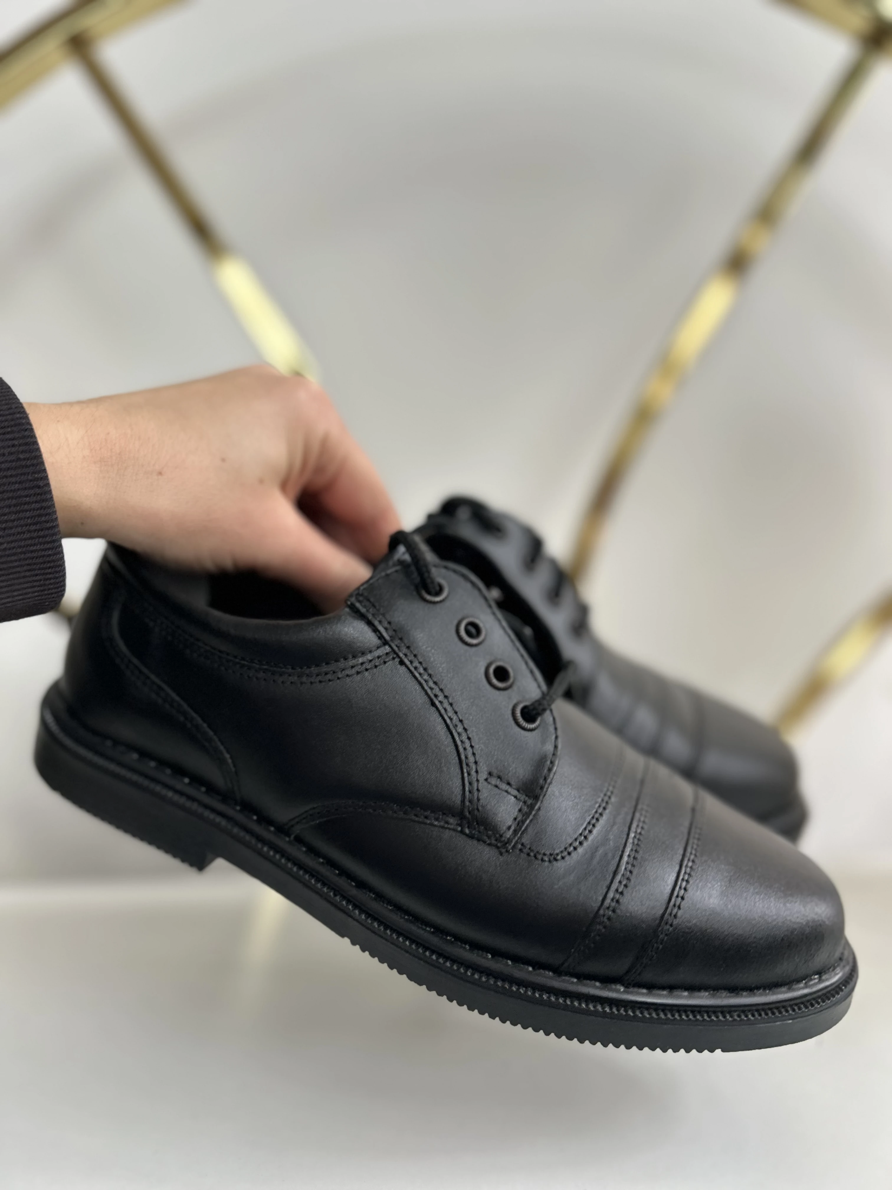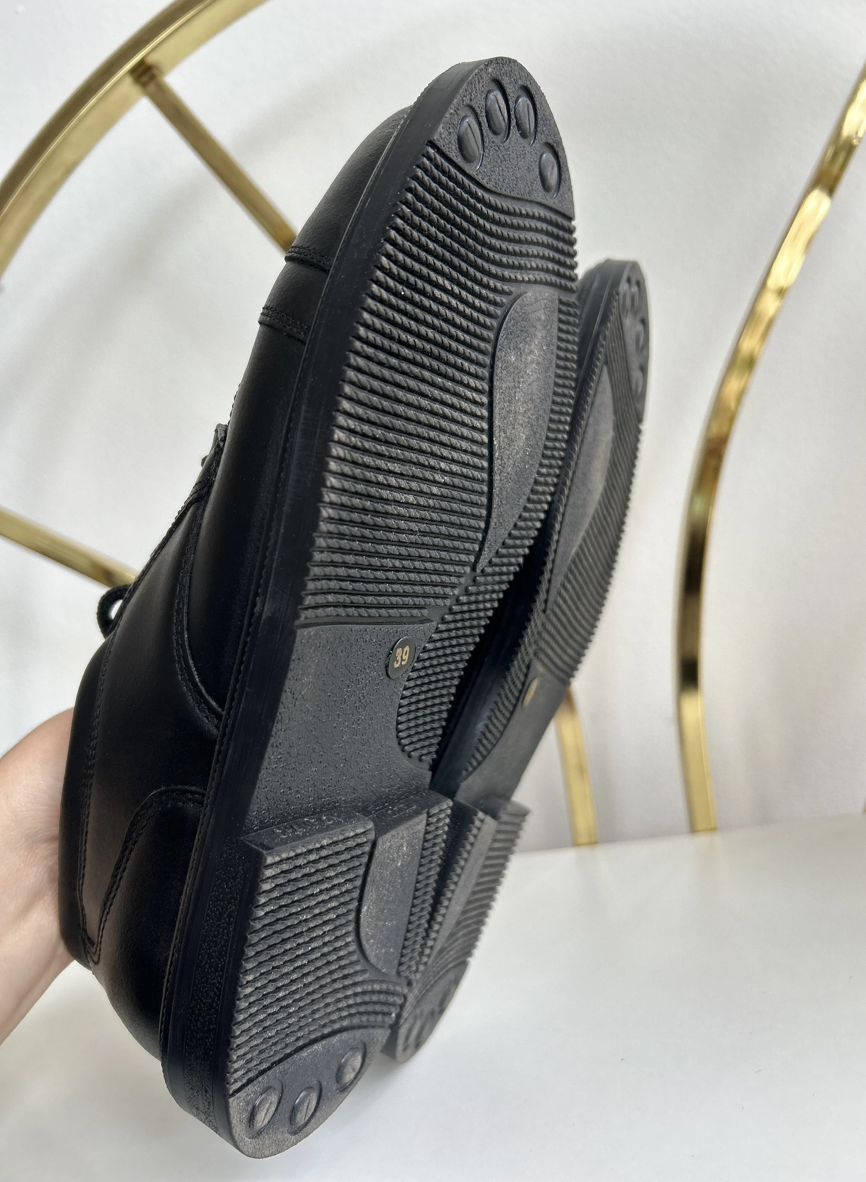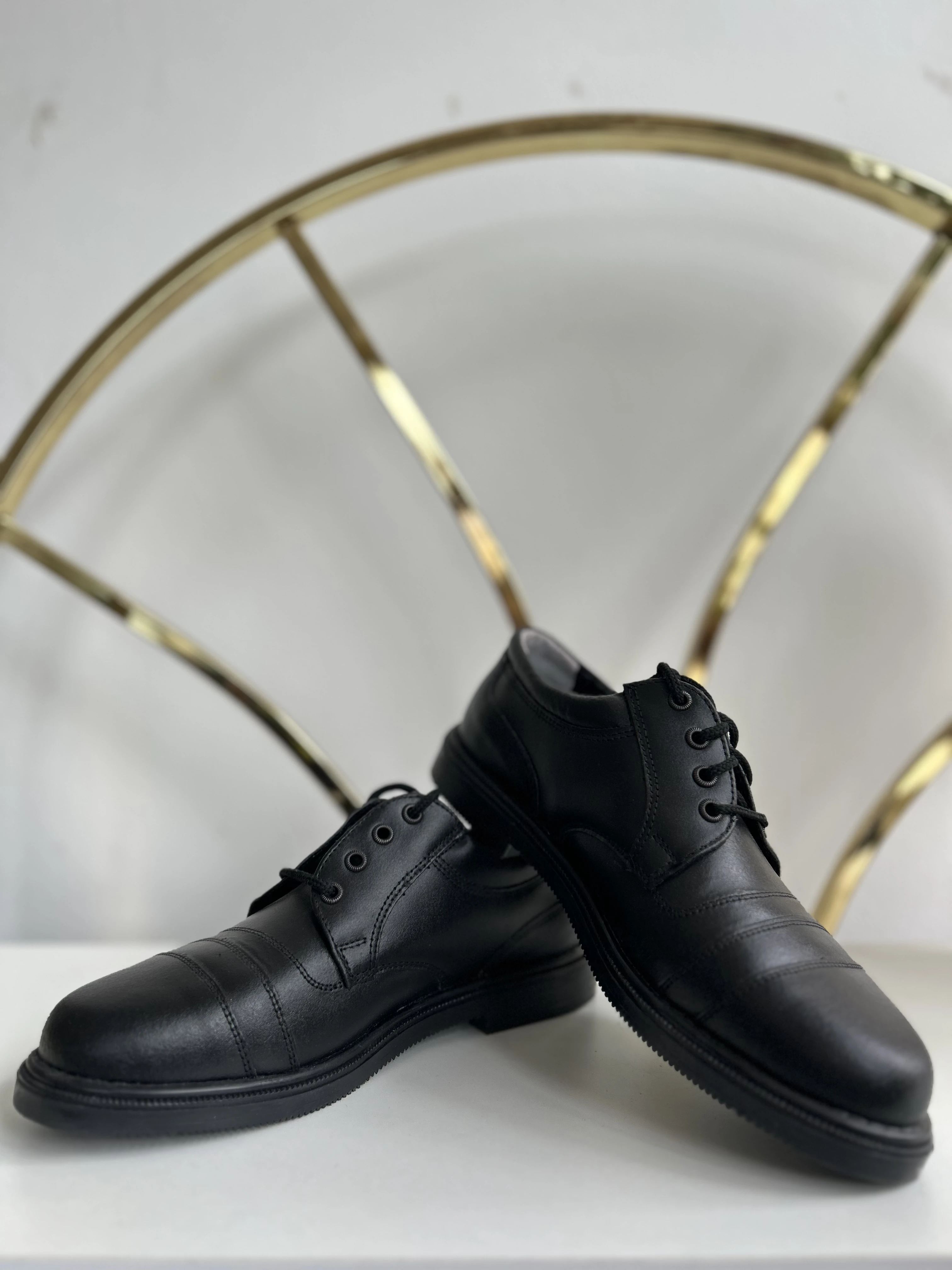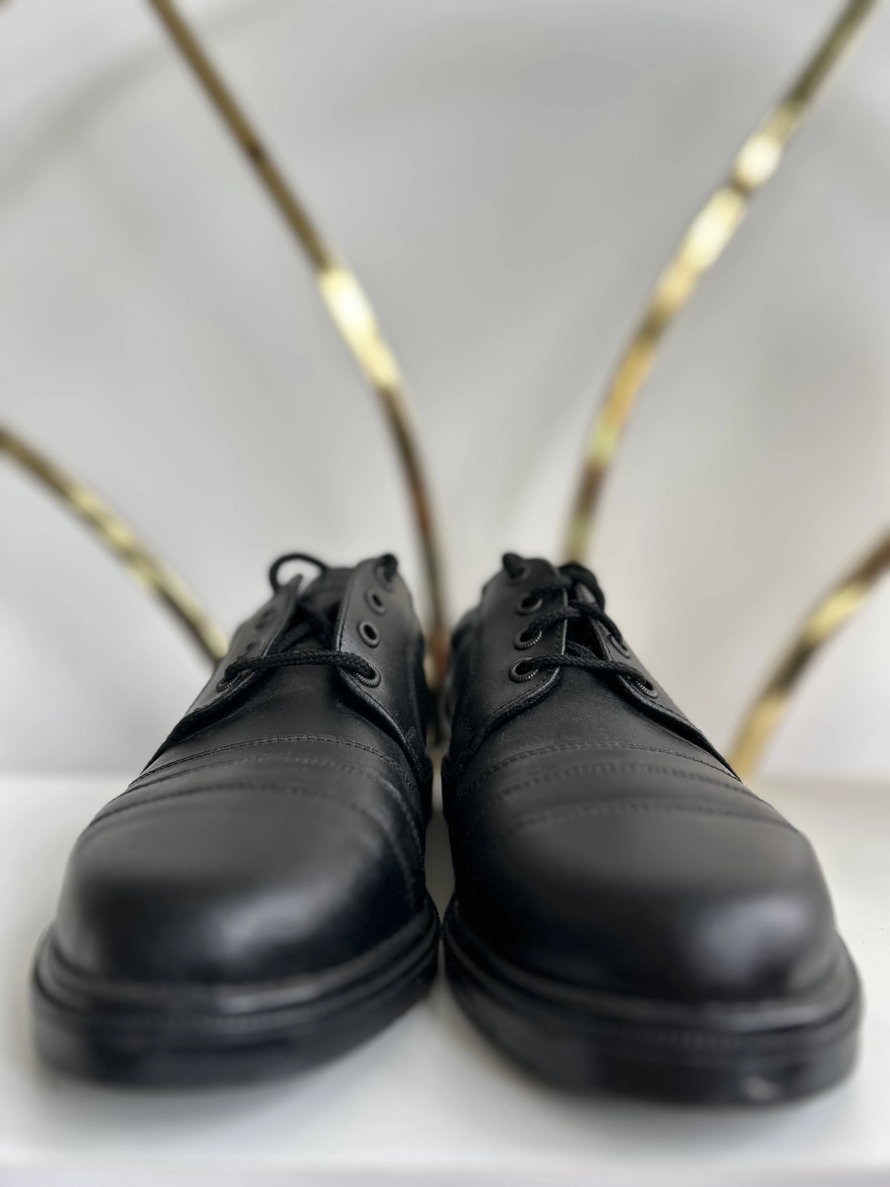 Czarne skórzane buty vintage dead stock. Wykonane w Polsce w latach 90.
