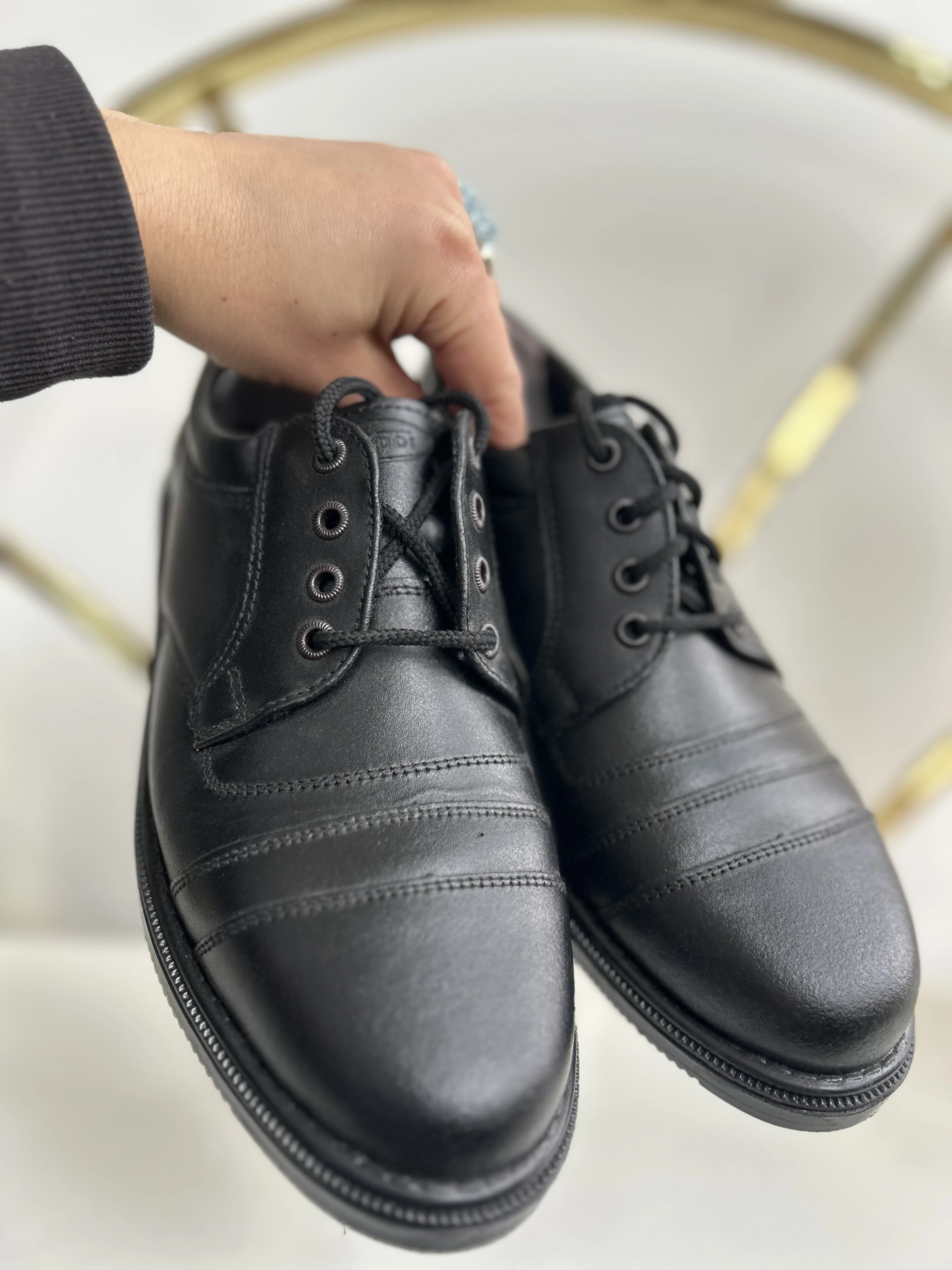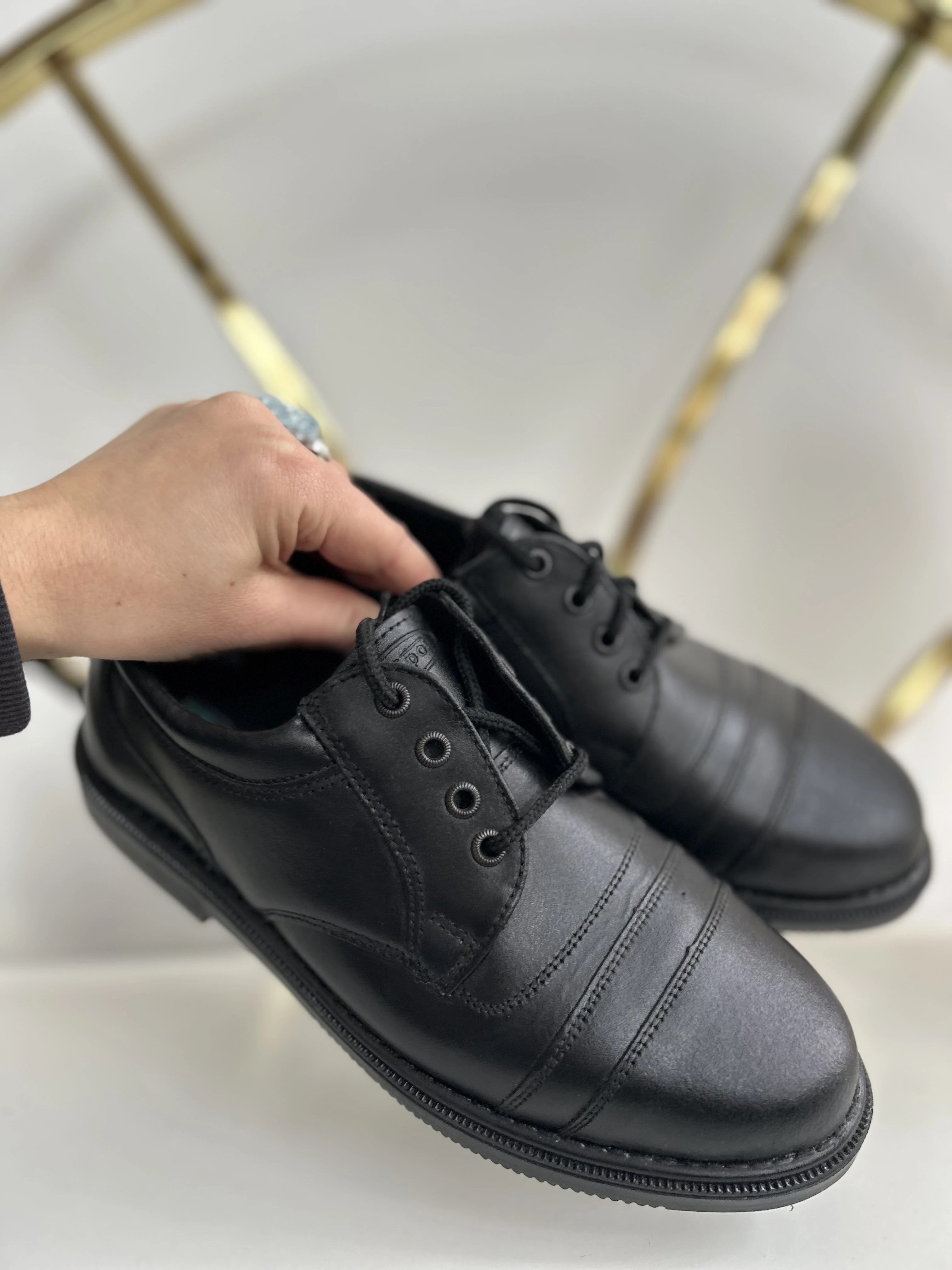 Czarne skórzane buty vintage dead stock. BUty nowe, vintage, nigdy nie używane. Wykonane w Polsce w latach 90.