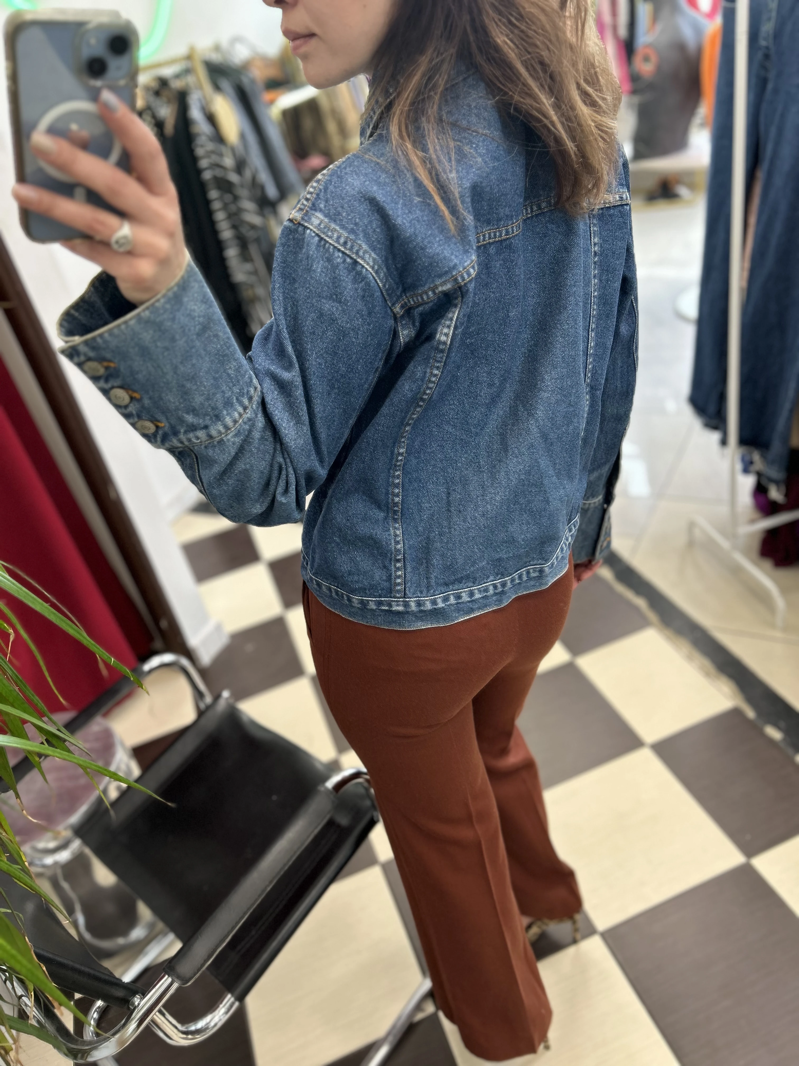 Kurtka jeansowa vintage z kotkiem i dżetami