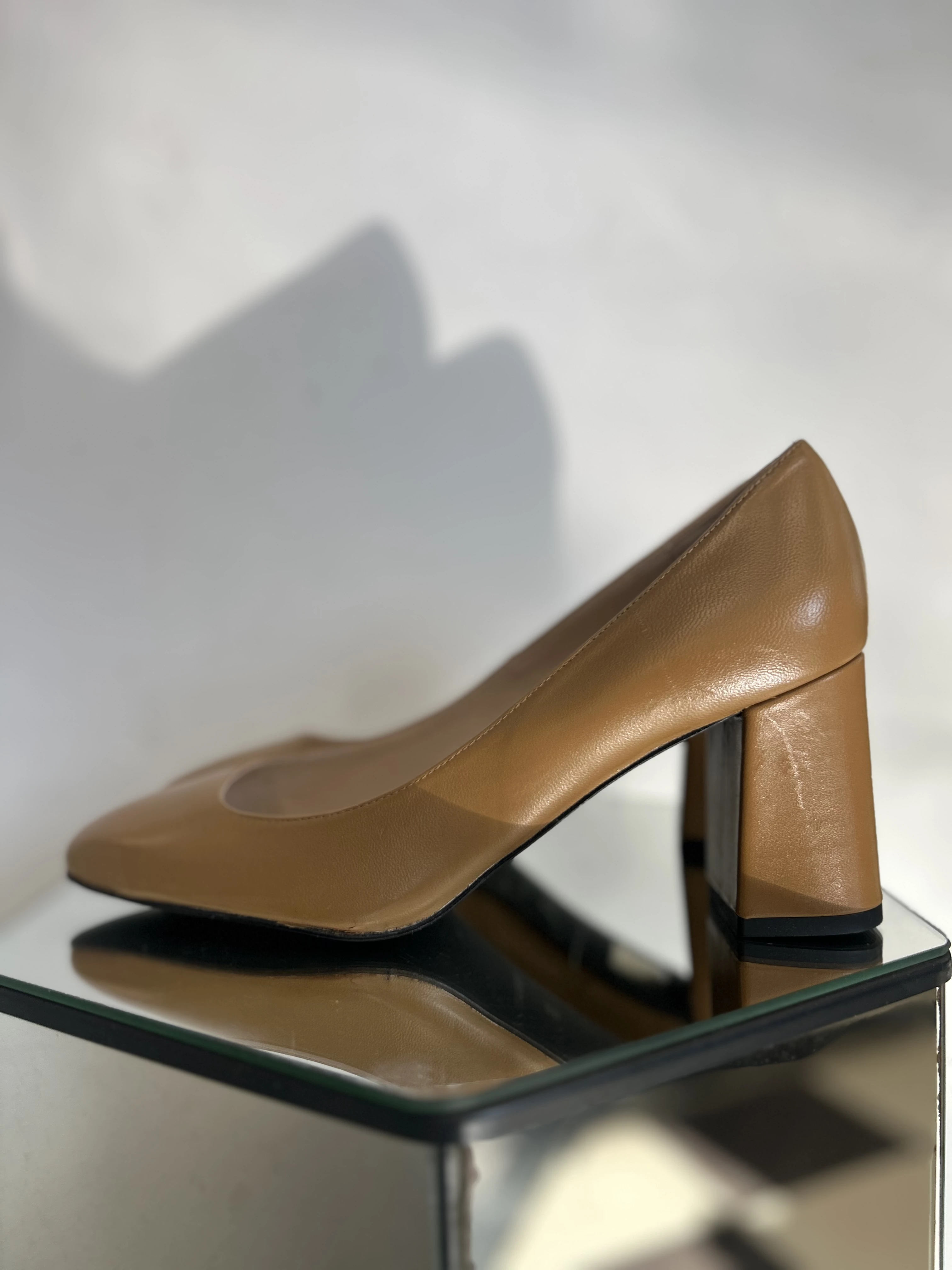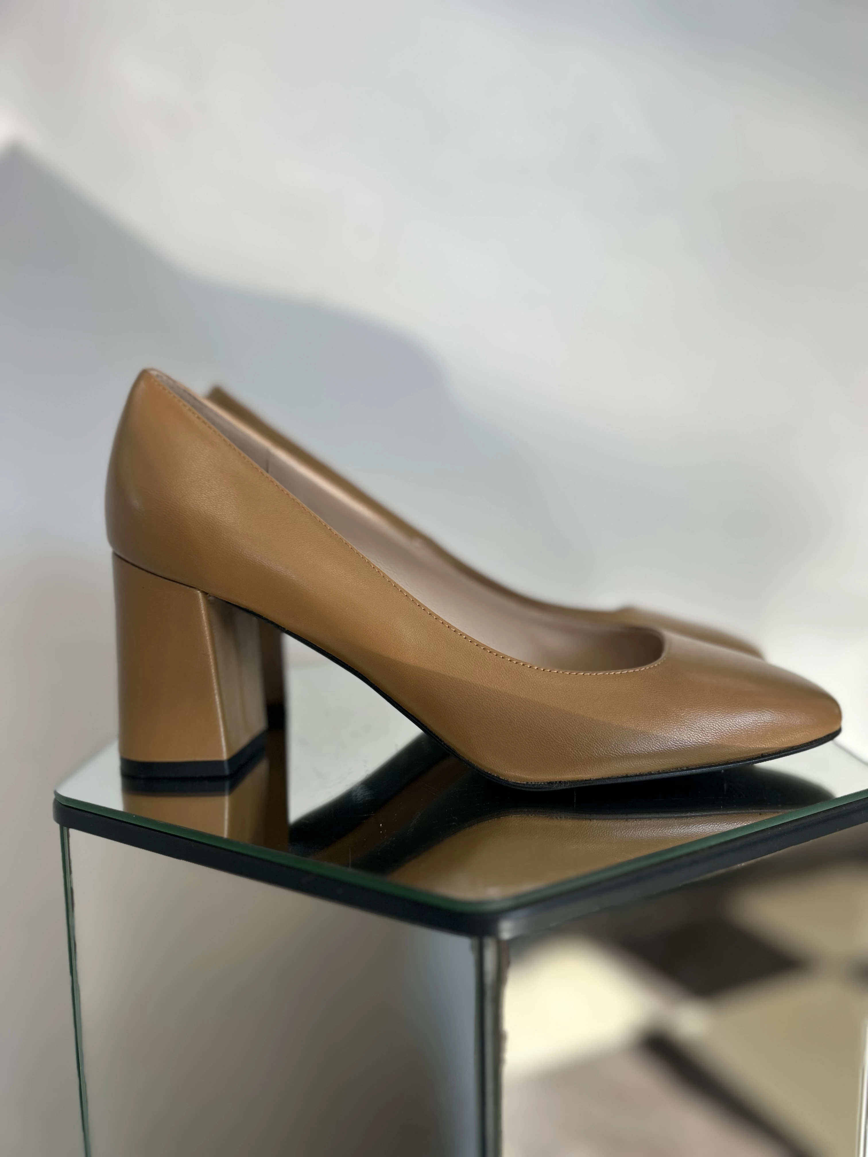 Brązowe buty vintage deadstock. Buty na trapezowym obcasie. Nowe, nigdy nie używane. Wykonane ze skóry naturalnej w środku i na zewnątrz.