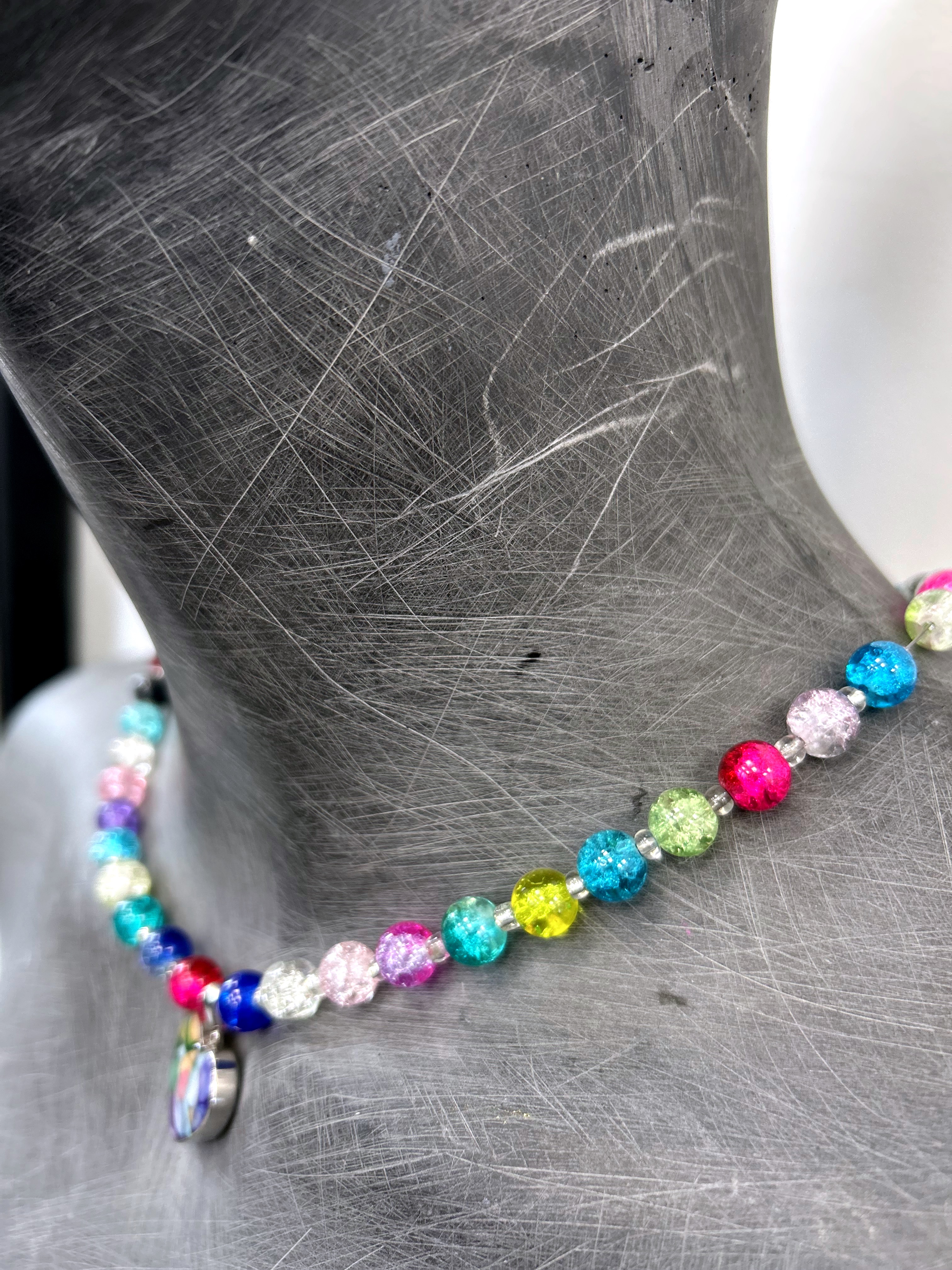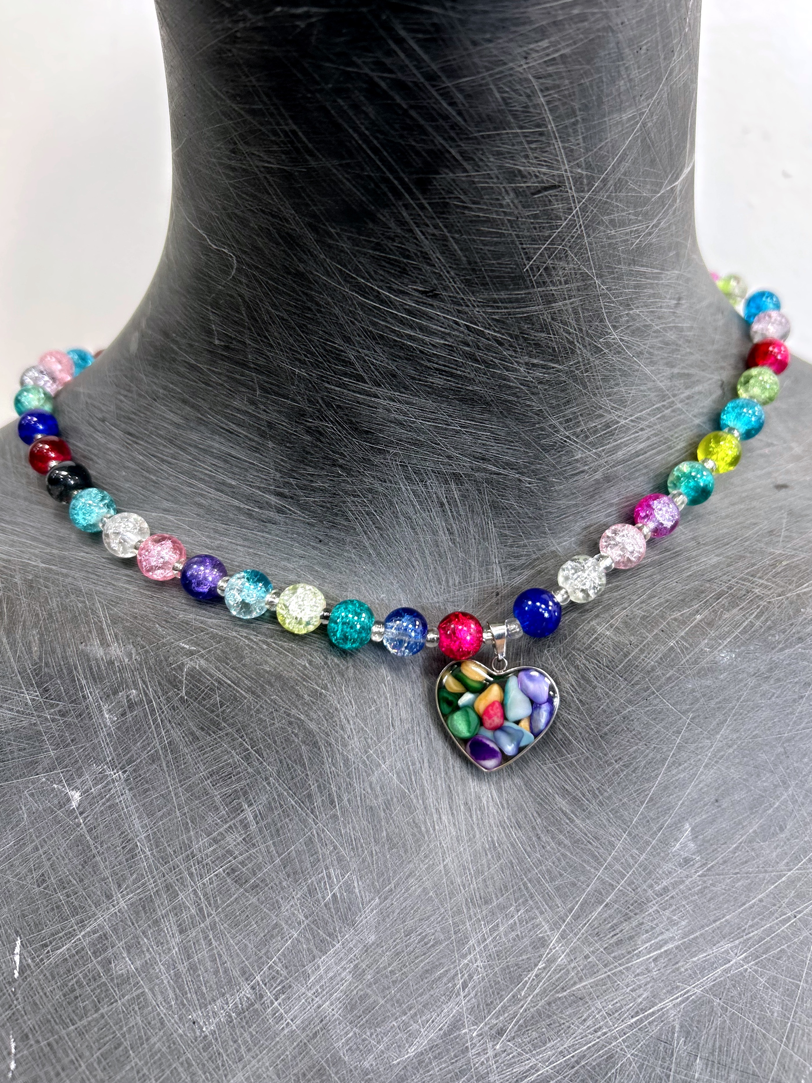 Naszyjnik hand made serce szklane kolorowe