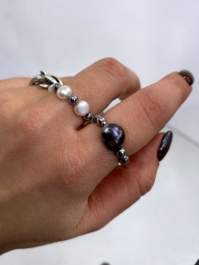Pierścionek hand made czarna perła