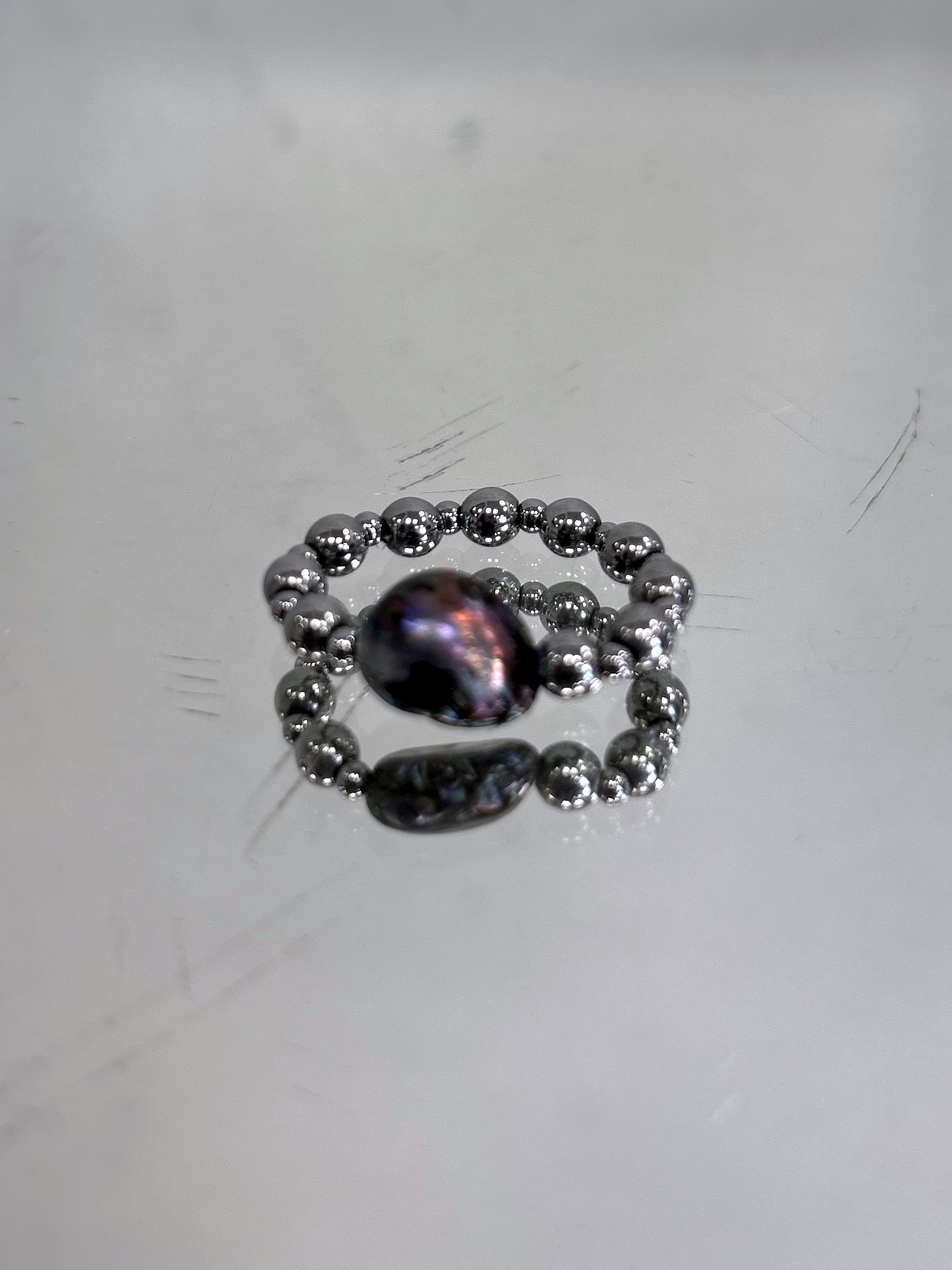 Pierścionek hand made na elastycznej żyłce.