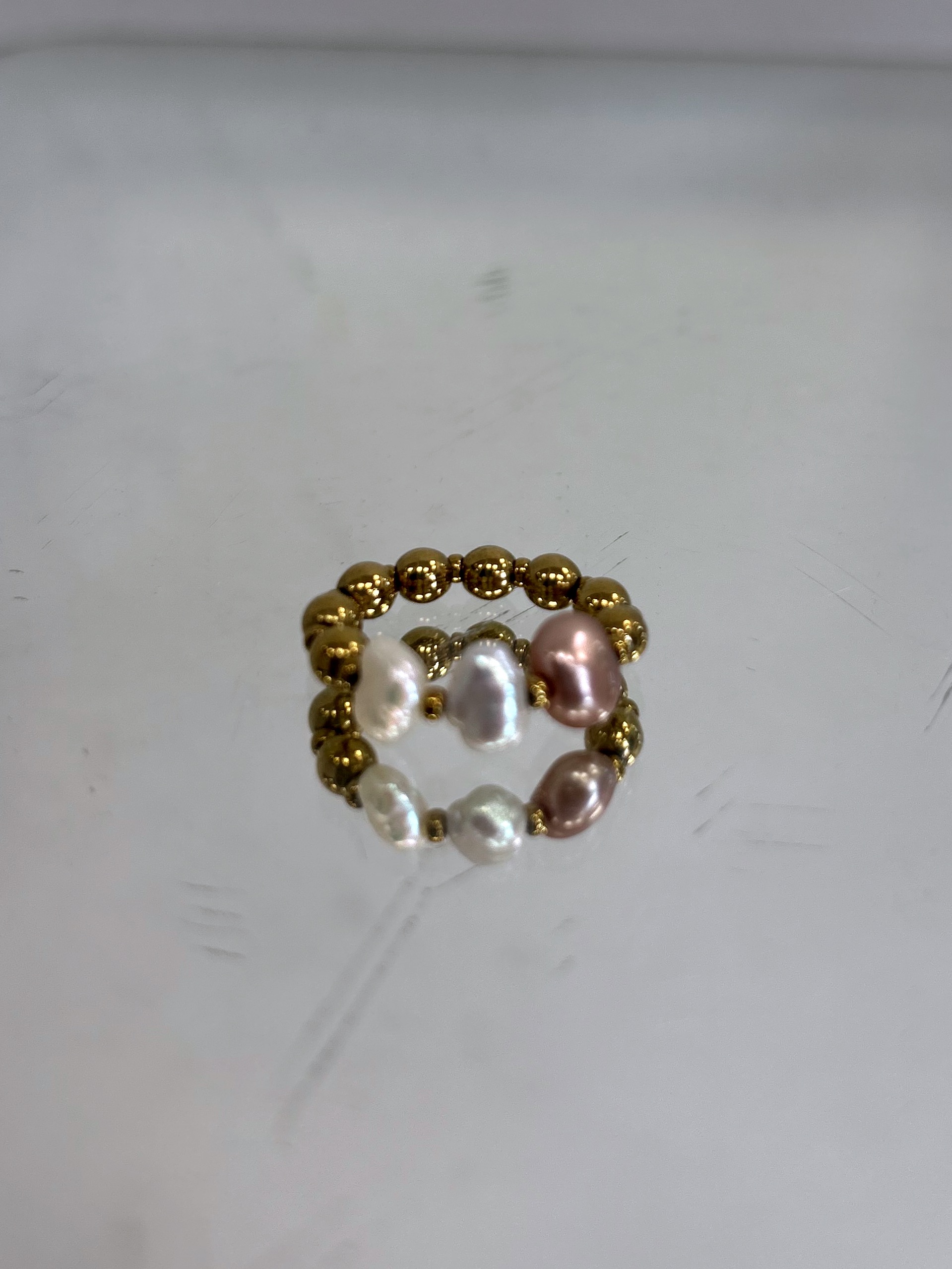 Wykonany z pastelowych perełek naturalnych i hematytu.