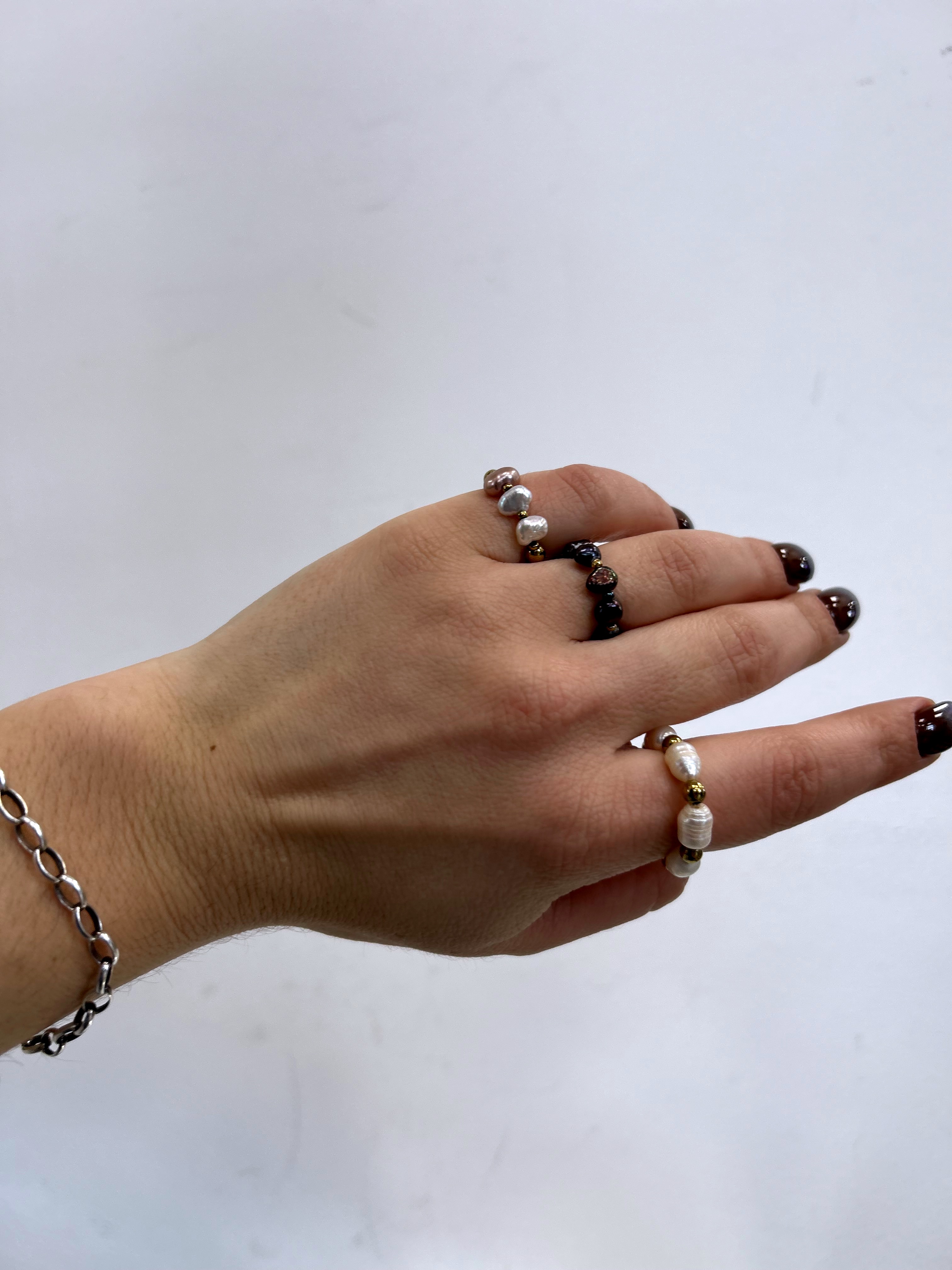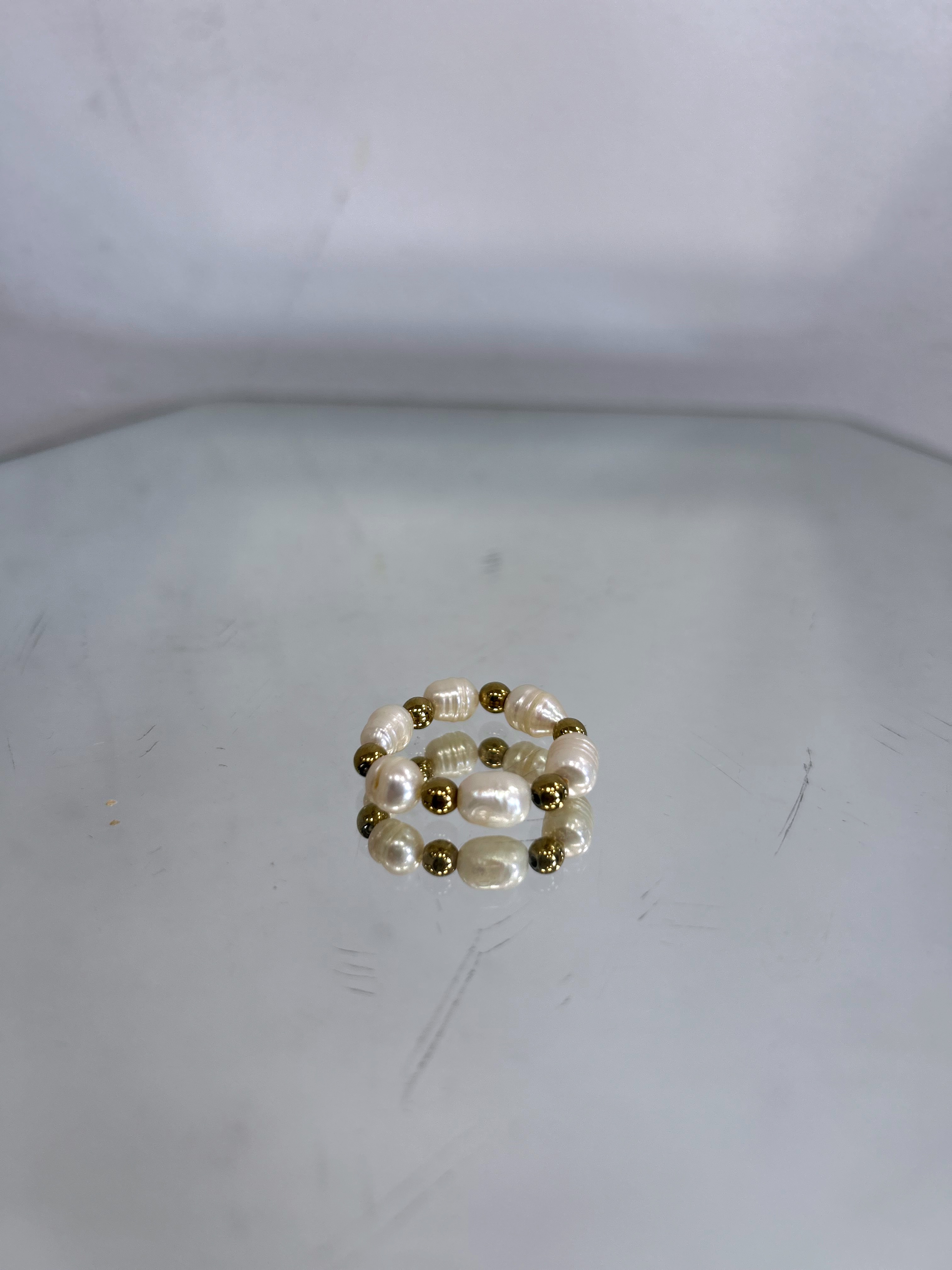 Pierścionek hand made perły naturalne złoty hematyt
