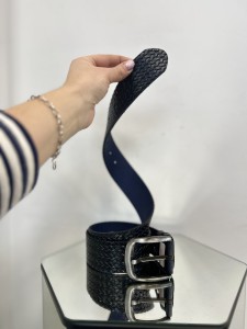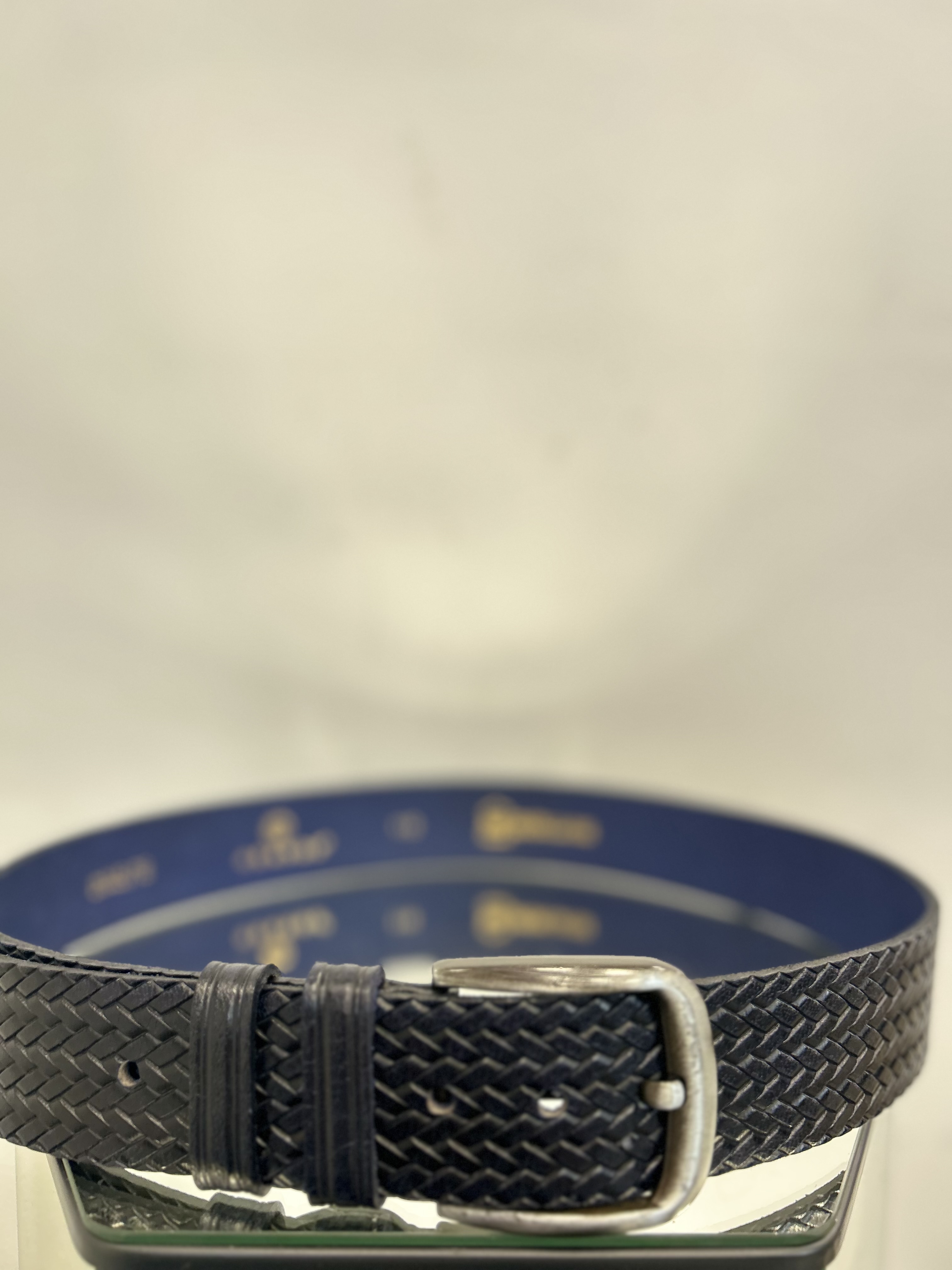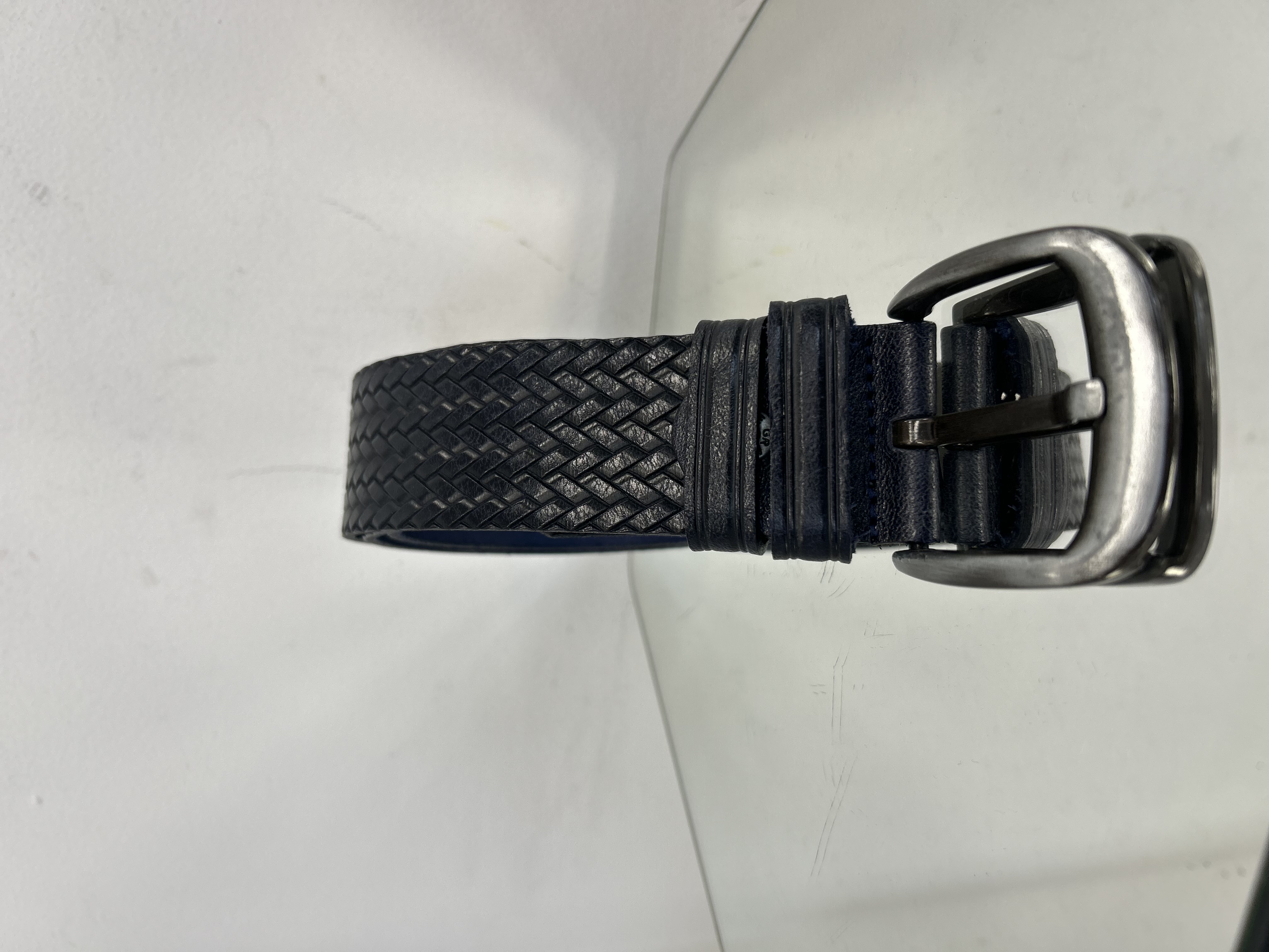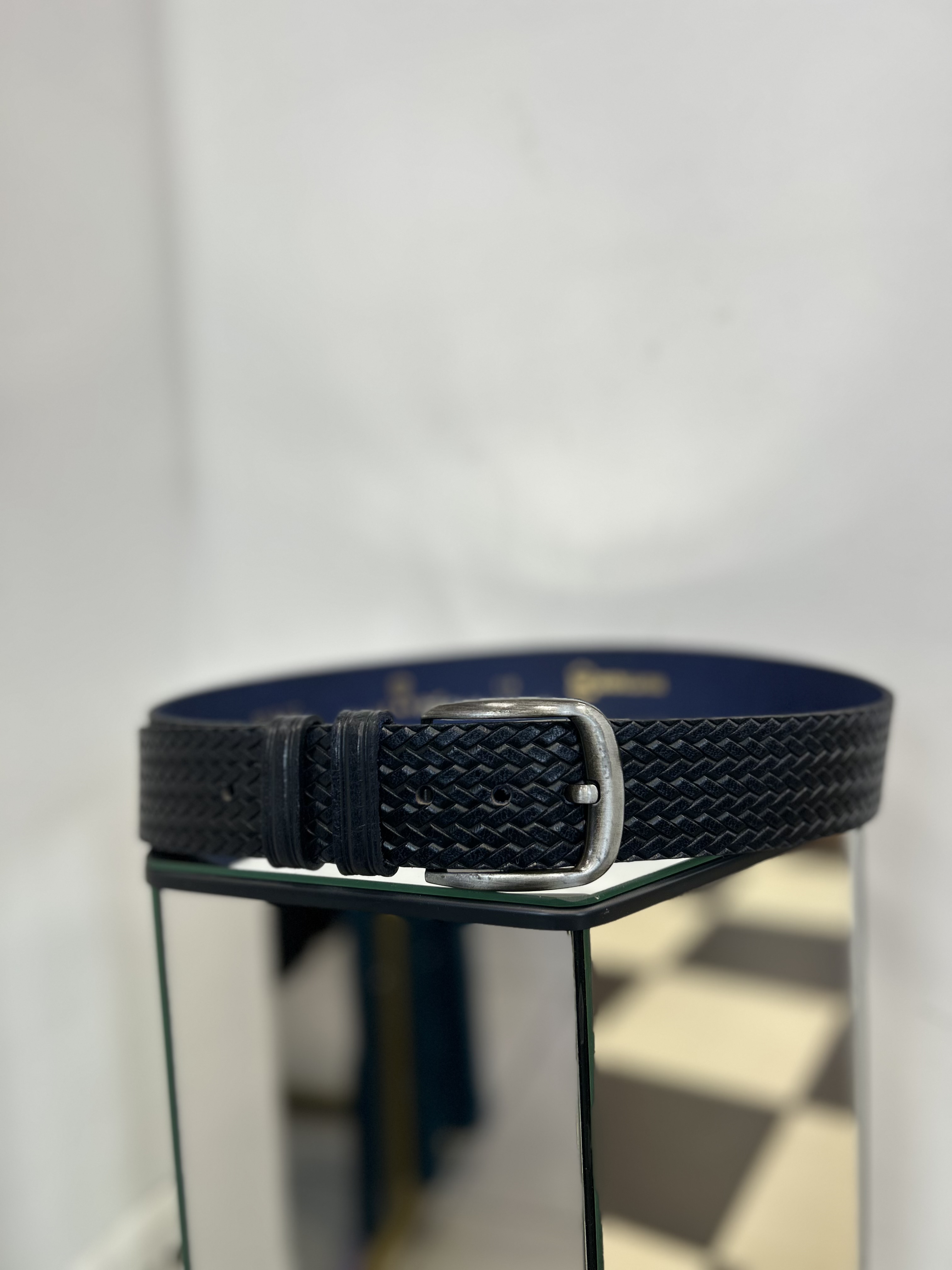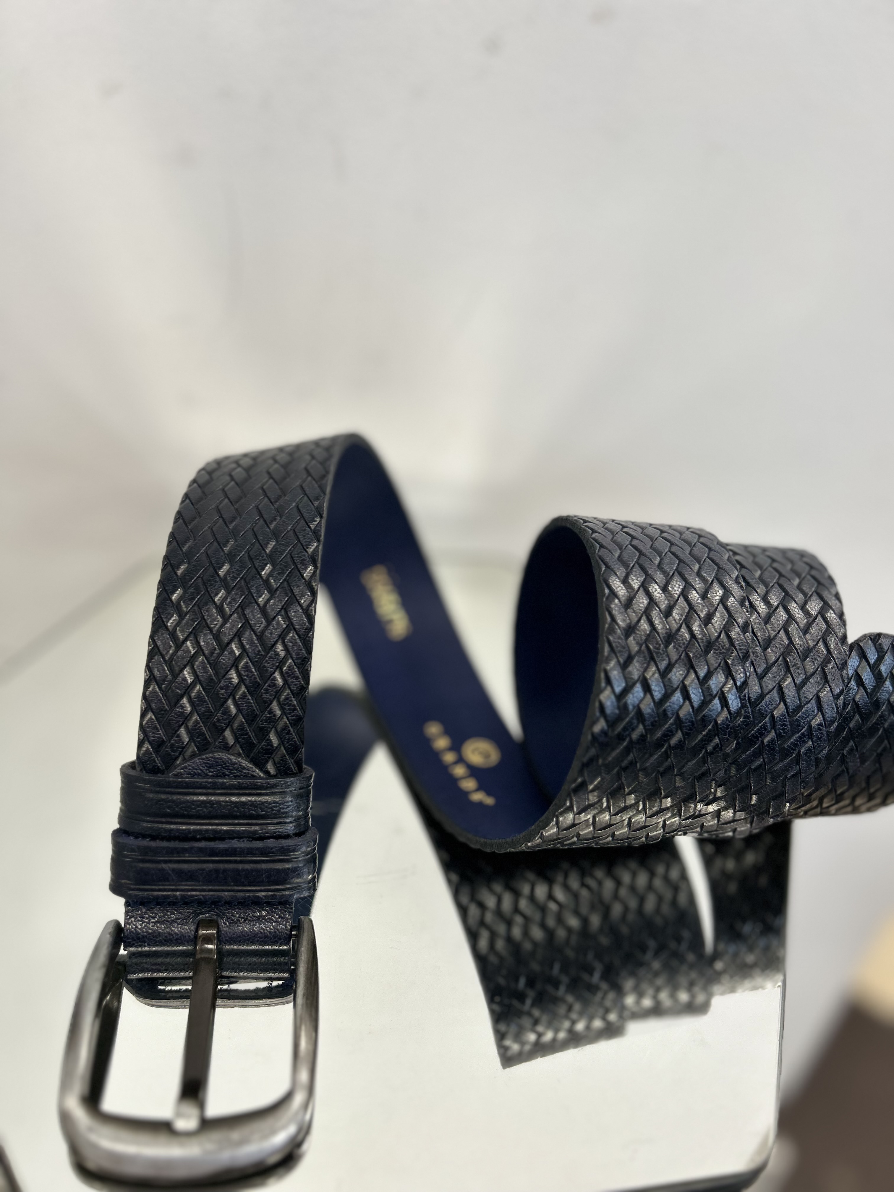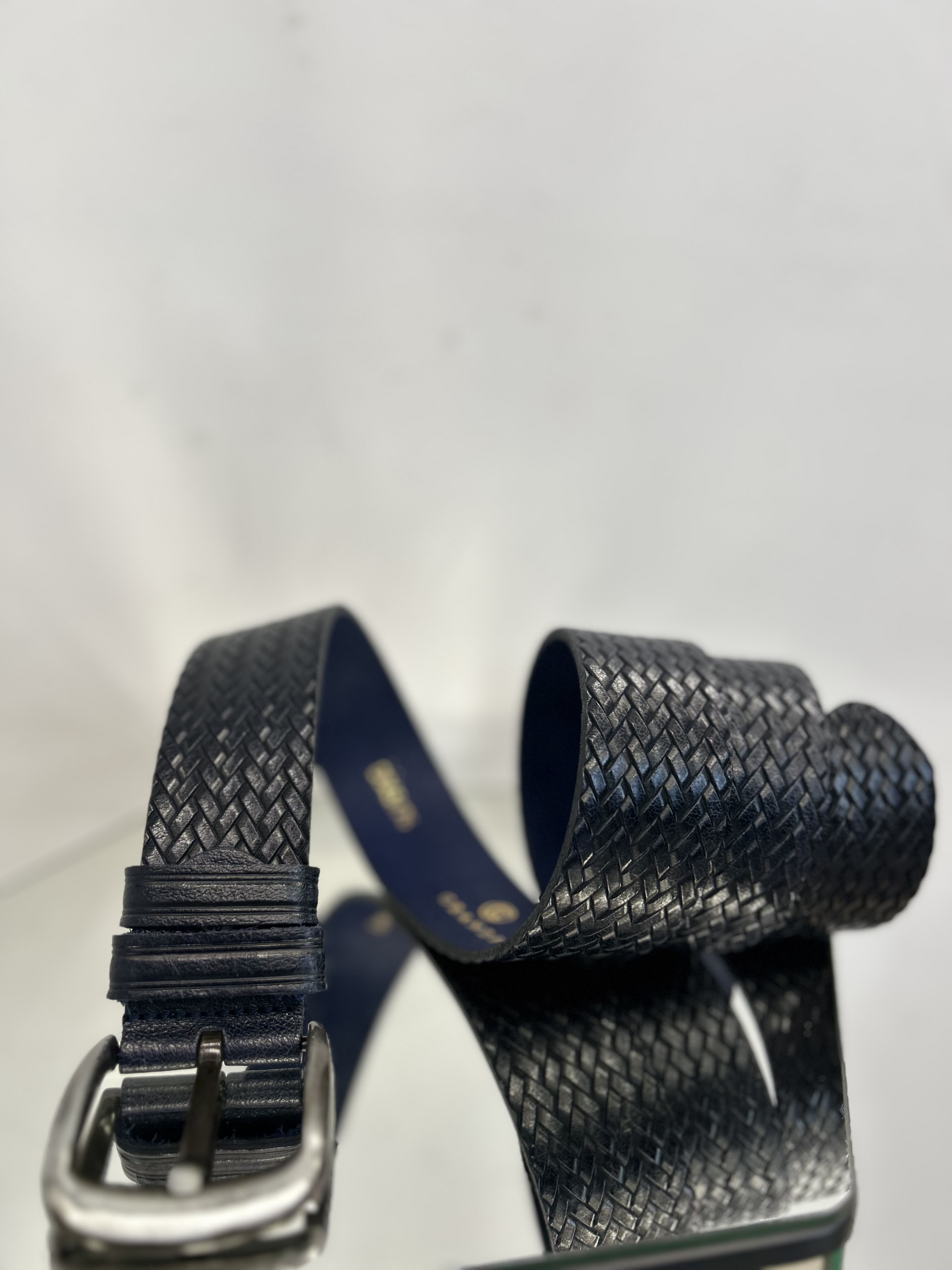 Pleciony pas ze skóry naturalnej w kolorze granatowym.