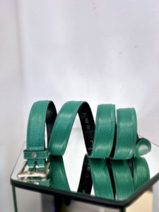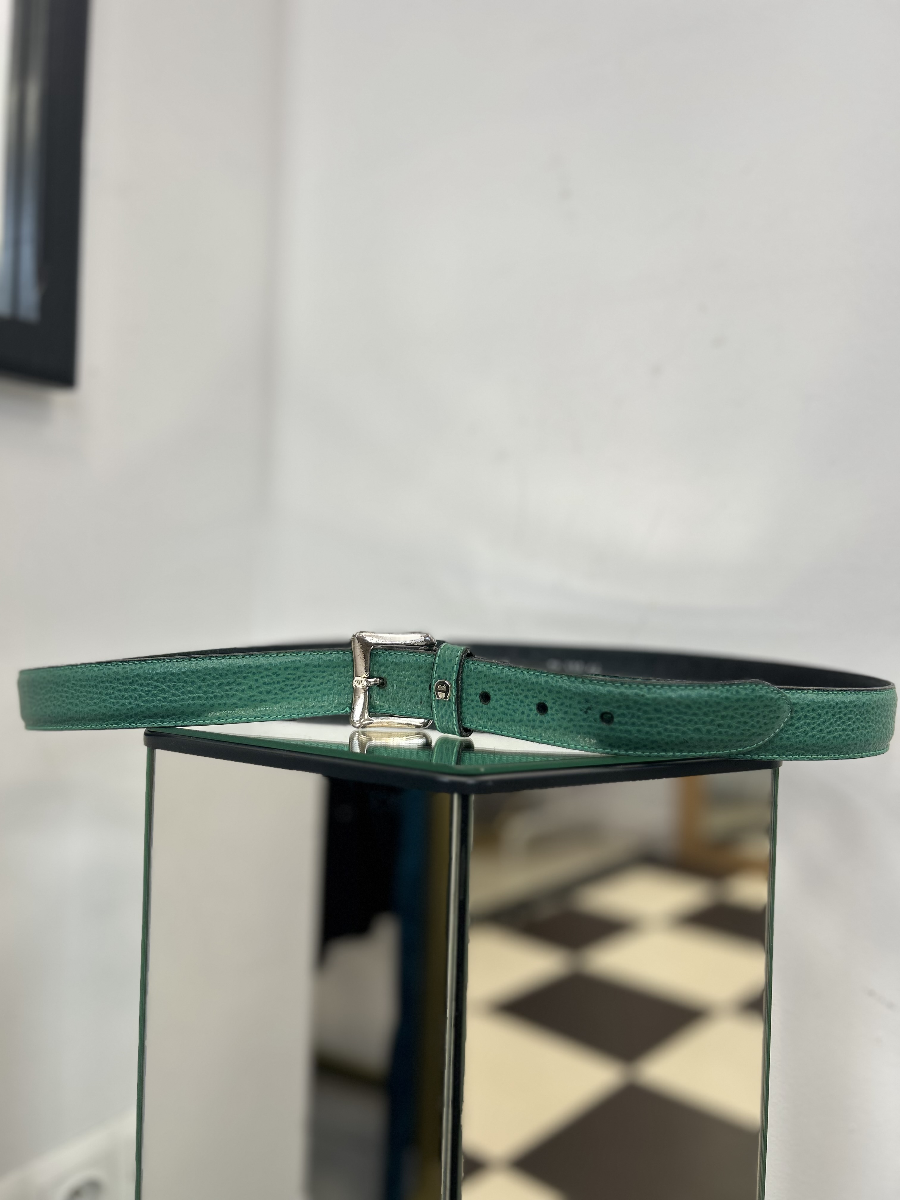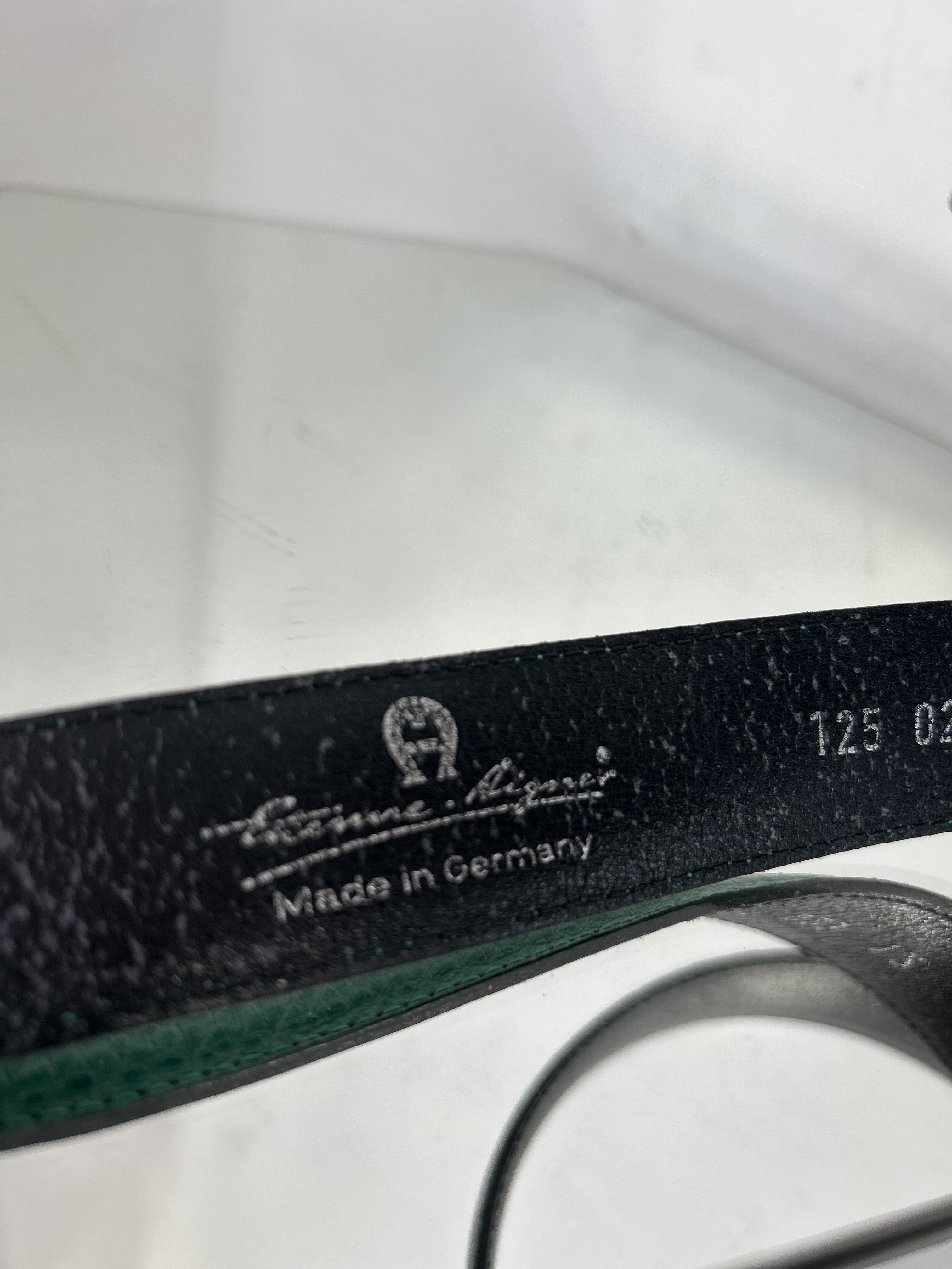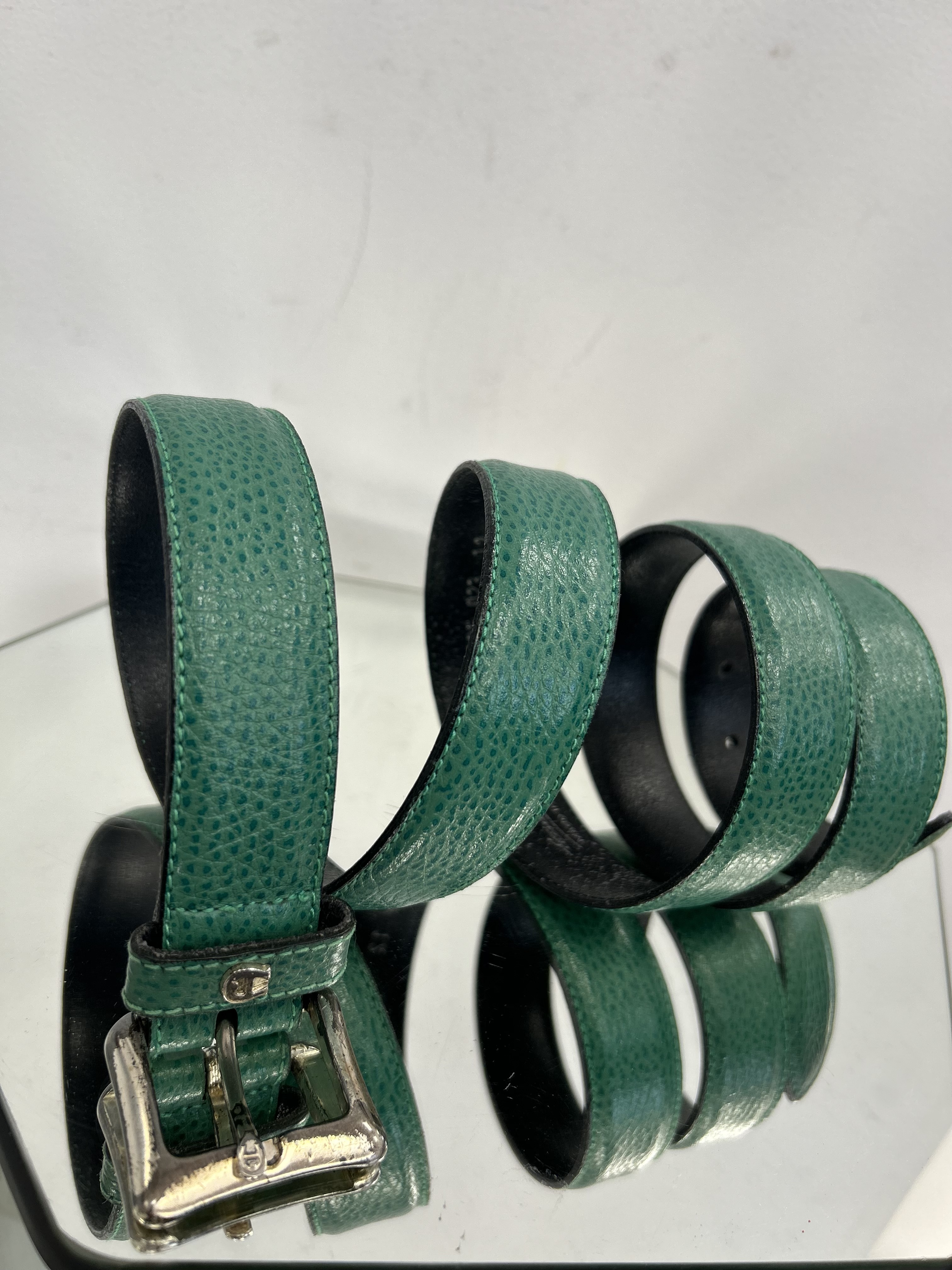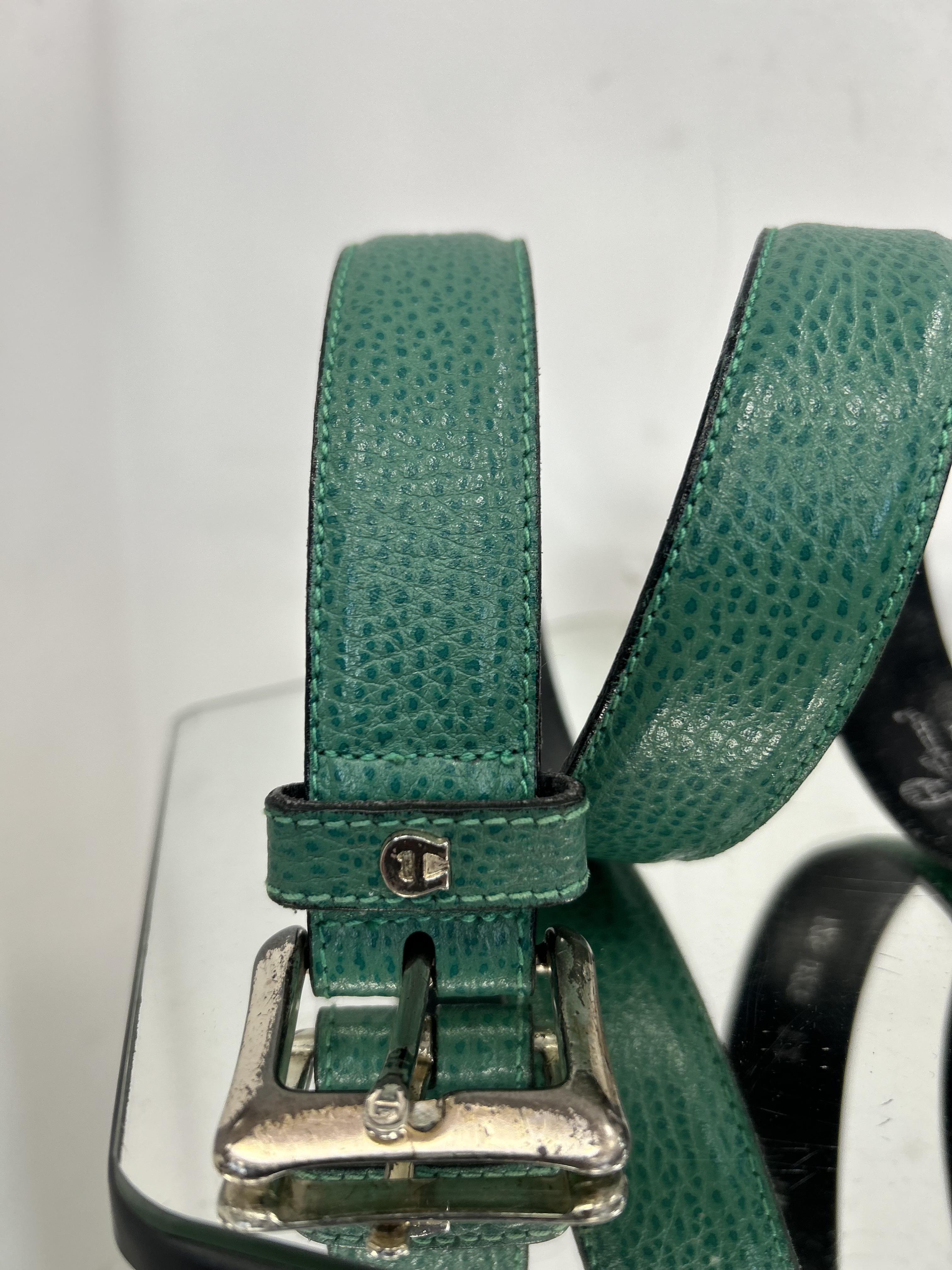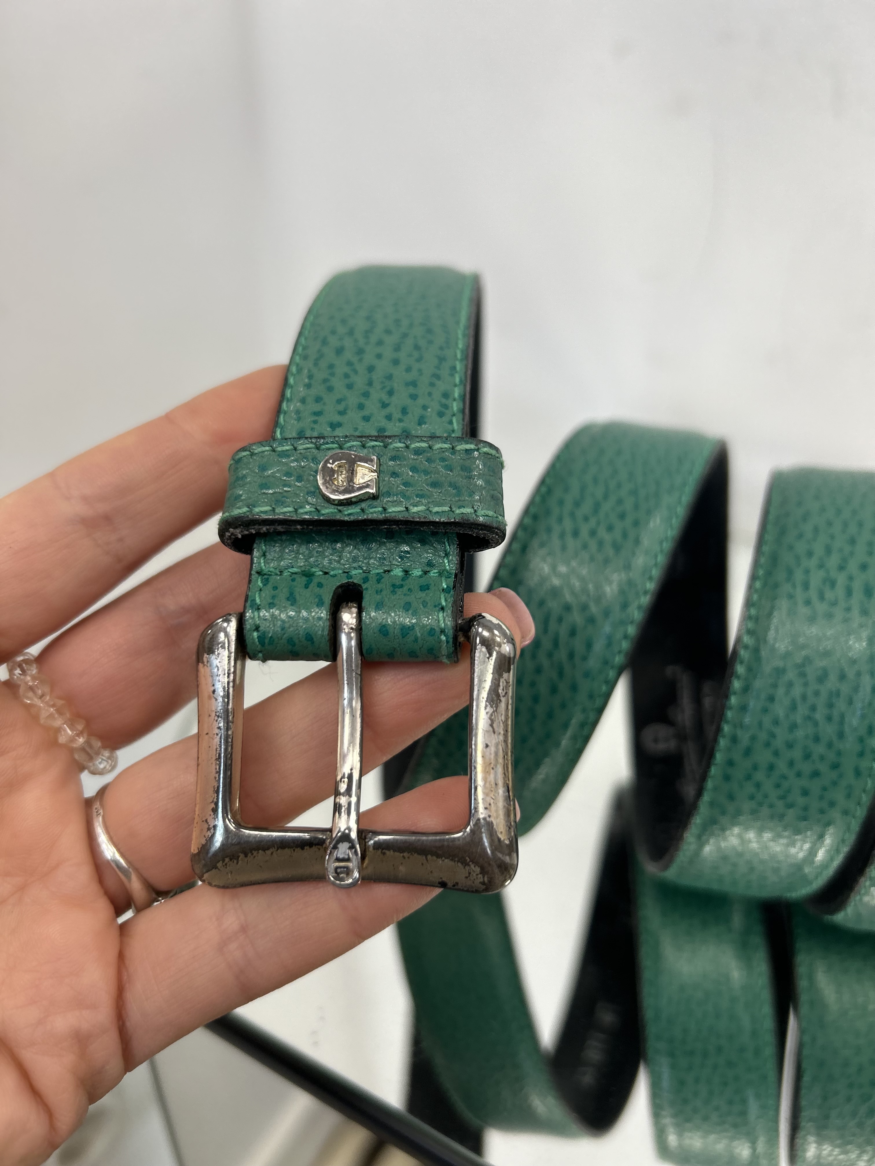 Skórzany pasek vintage Atienne Aigner w żywym zielonym kolorze.